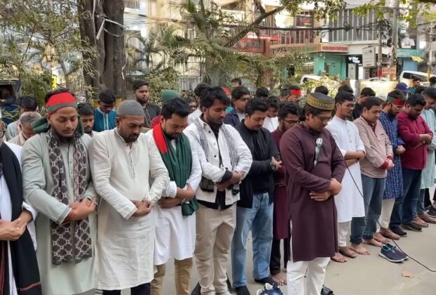 এন্ট্রি ফ্যাসিস্ট স্কোয়াড এর উদ্যোগে ইনকিলাব মঞ্চের মুখপাত্র শহীদ শরীফ ওসমান হাদীর গায়েবানা জানাযা অনুষ্ঠিত হয়েছে। শনিবার দুপুরে চট্টগ্রামের জামালখান প্রেসক্লাবের সামনে এই গায়েবানা জানাযা অনুষ্ঠিত হয়। গায়েবানা জানাযায় অংশ গ্রহণ করেন জুলাই গণঅভ্যুত্থানের জুলাই যোদ্ধা, ছাত্র-জনতা বিভিন্ন রাজনৈতিক দলের নেতাকর্মীরা। এসময় জানাযার ইমামতি করেন জুলাইয়ের শহীদ মাহবুবুল হকের ছোট ভাই মঞ্জু মাহিম। জানাজা শেষে […]