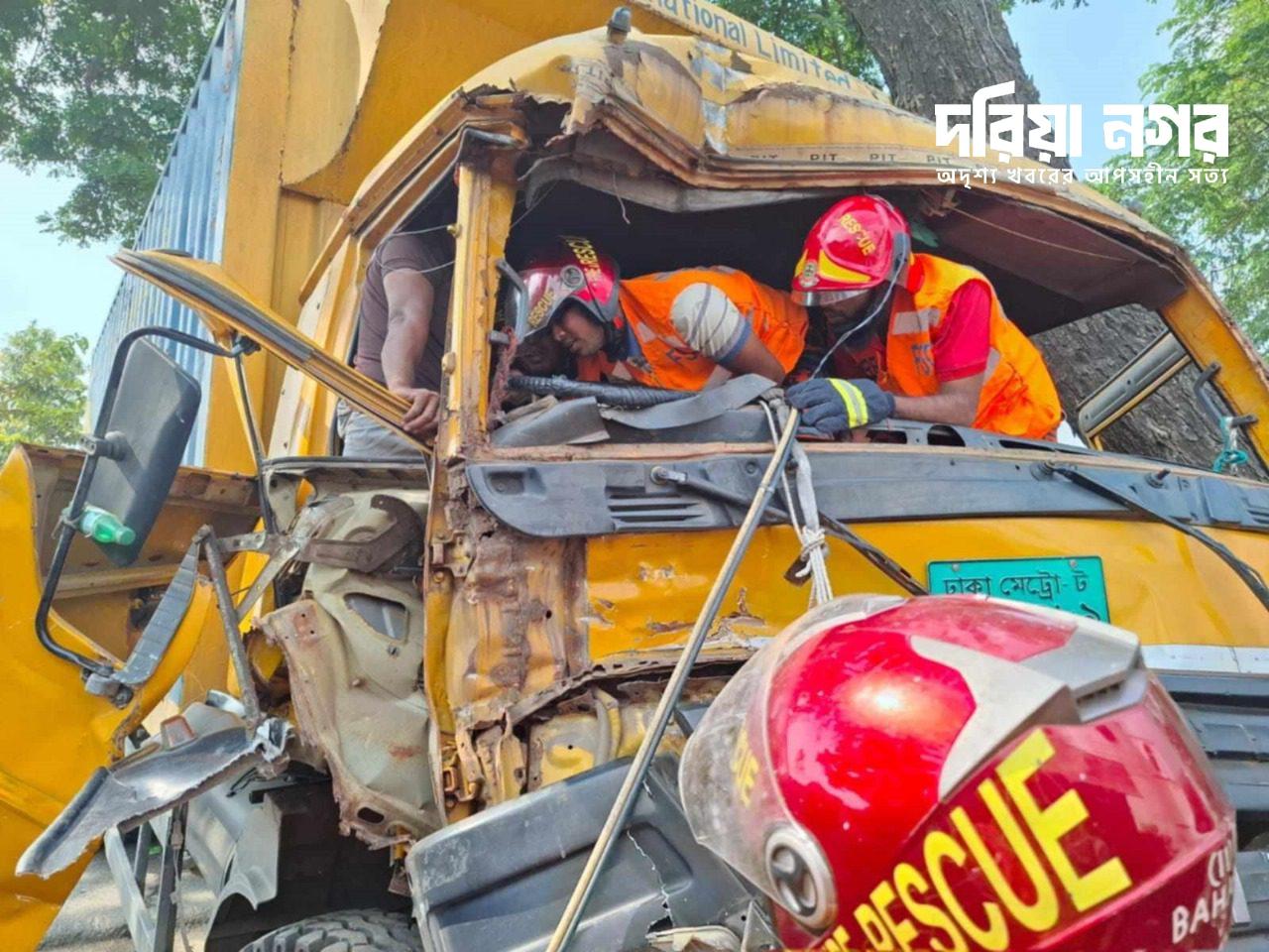 ফায়ার সার্ভিস জানায়, নিয়ন্ত্রণ হারিয়ে একটি কাভার্ড ভ্যান সমানে থাকা আরেকটি কাভার্ড ভ্যানকে ধাক্কা দেয়। এতে একটি ভ্যানের সামনের অংশে দুমড়ে-মুচড়ে যায়। সেখানেই আটকা পড়েন লরির চালকসহ দুই জন। পরে স্থানীয়রা ভ্যানের ভিতর থেকে এক জনকে উদ্ধার কতে পারলেও লরীর চালককে উদ্ধার করেছে ফায়ার সার্ভিস।