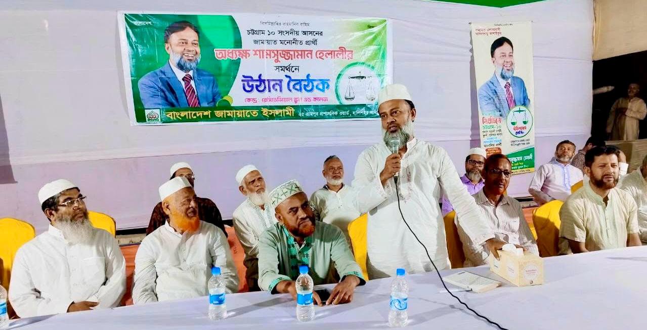 চট্টগ্রাম-১০ আসনে জামায়াতে ইসলামী মনোনীত সংসদ সদস্য প্রার্থী অধ্যক্ষ শামসুজ্জামান হেলালী বলেছেন, “বর্তমান পরিস্থিতি ইঙ্গিত করছে এবারের বিজয় ইসলামের পক্ষেই আসবে ইনশাআল্লাহ।” তিনি আরও বলেন, “দীর্ঘ ৪৫ বছর আমাদের কথা বলার সুযোগ দেয়া হয়নি। কিন্তু আল্লাহর রহমতে এখন পরিস্থিতির পরিবর্তন হচ্ছে। জনগণ ধীরে ধীরে আমাদের প্রতি আস্থা ও বিশ্বাস ফিরে পাচ্ছে। ক্ষমতার মোহে আমরা যেন পরকালকে ভুলে না যাই। আমানত রক্ষা ও সততার প্রশ্নে জামায়াত সর্বদা আপোসহীন থাকবে ইনশাআল্লাহ।”