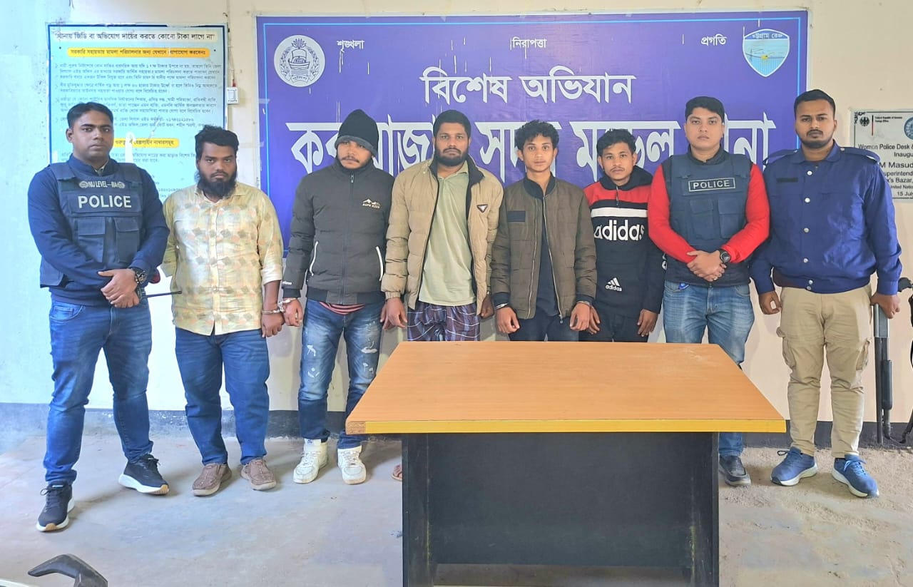 গ্রেপ্তাররা হলেন, কামরুল হাসান বাবু (২৬), ইমরান উদ্দিন খোকা ওরফে আরিয়ান খোকা (২৫), আব্দুল কাইয়ুম (৩৩), মো. সাকিব (২০) এবং মাসুদ হাসান বকুল (১৮)। তাদের সবার বাড়ি কক্সবাজার সদর উপজেলার ঝিলংজা ইউনিয়নের পূর্ব লারপাড়া এলাকায়।