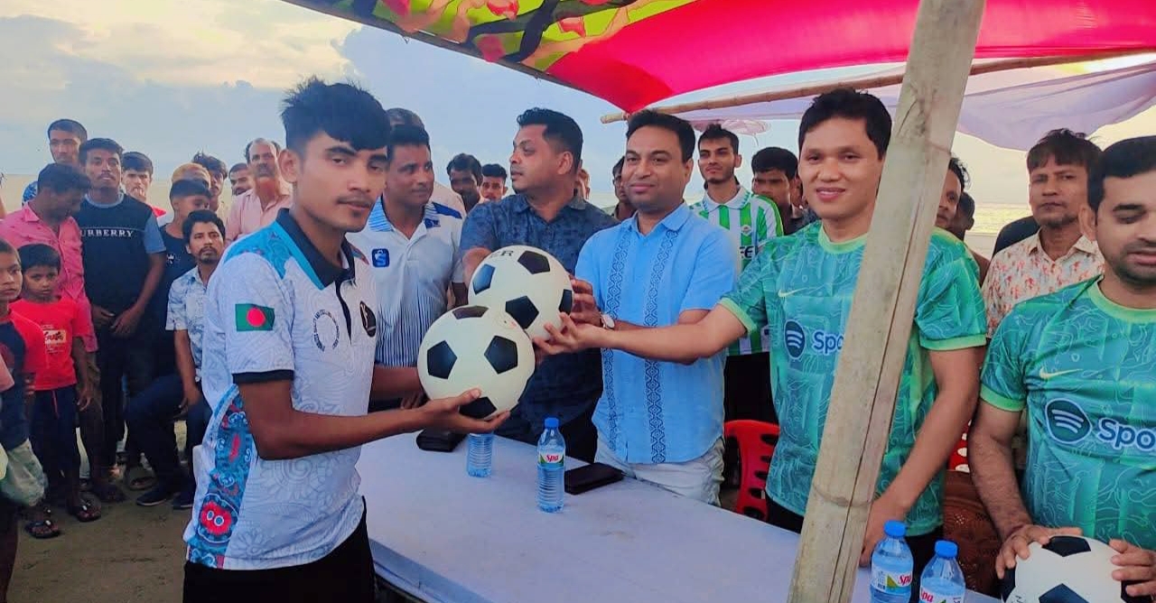 বুধবার উপজেলা বড়ঘোপ সমুদ্র সৈকতে আয়োজিত অনুষ্ঠানে বিভিন্ন বিদ্যালয় ও স্থানীয় ক্রীড়া সংগঠনের প্রতিনিধিদের হাতে ফুটবল তুলে দেন ইউএনও ক্যথোয়াইপ্রু মারমা।