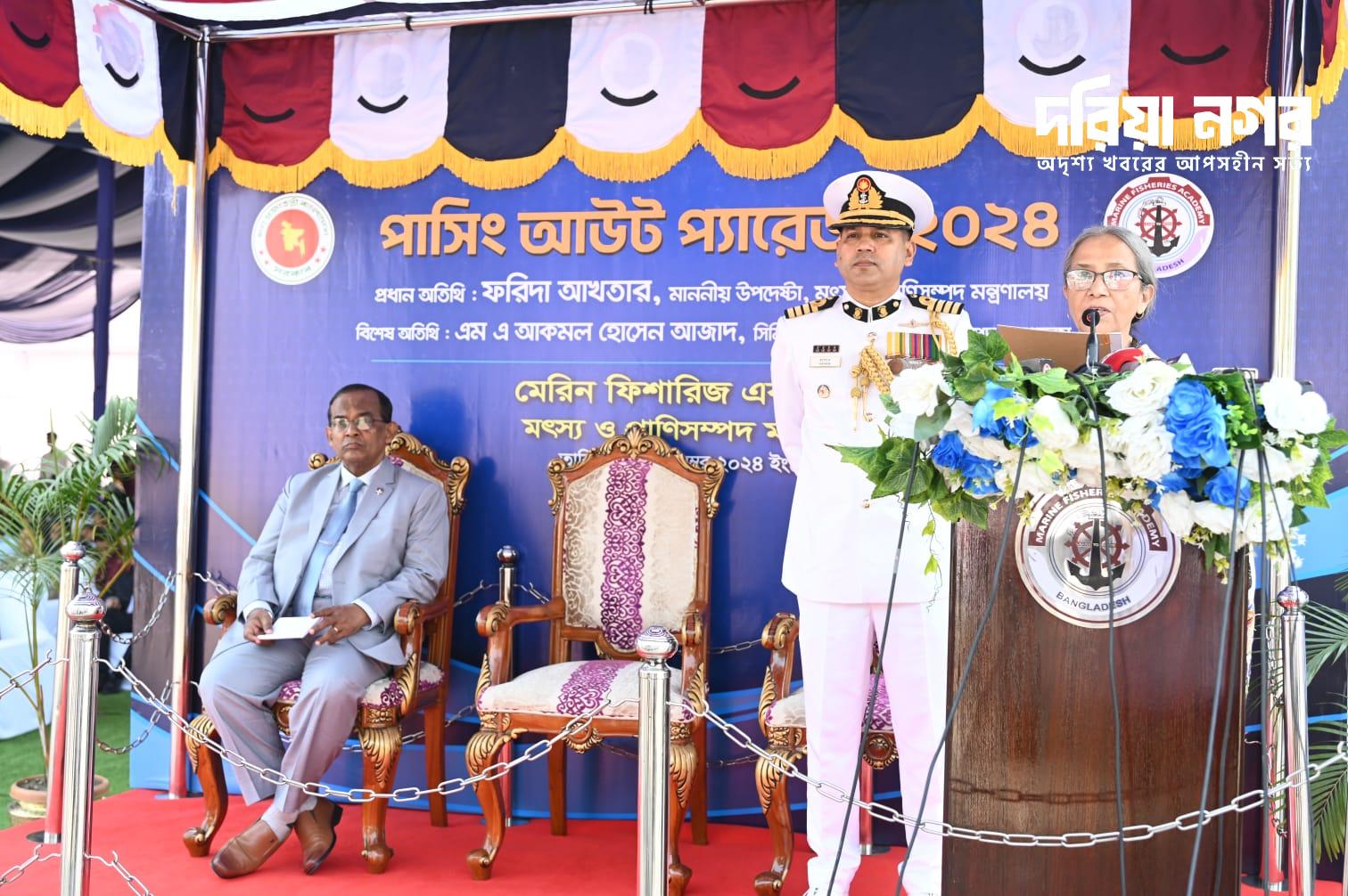 মেরিন ফিশারিজ একাডেমি হতে প্রশিক্ষিত হয়ে ক্যাডেটরা গভীর সমুদ্রের অকুতোভয় কান্ডারী হতে চলেছেন বলে মন্তব্য করেছেন মৎস্য ও প্রাণিসম্পদ উপদেষ্টা ফরিদা আখতার। তিনি বলেন, কঠোর অধ্যবসায় এবং প্রগাঢ় প্রশিক্ষণের মাধ্যমে অর্জিত এ জ্ঞান ক্যাডেটদের ভবিষ্যৎ কর্মক্ষেত্রে সহায়ক ভূমিকা রাখবে।