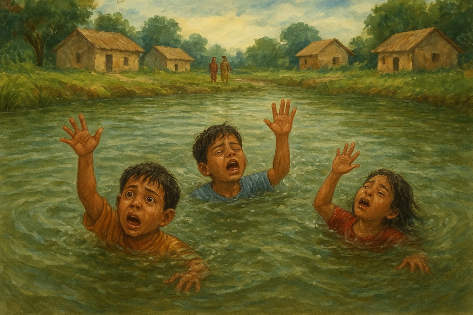 শুক্রবার (২৪ অক্টোবর) বিকেলে উত্তর পারুয়া গ্রামের একটি পুকুরে পড়ে যায় তারা।