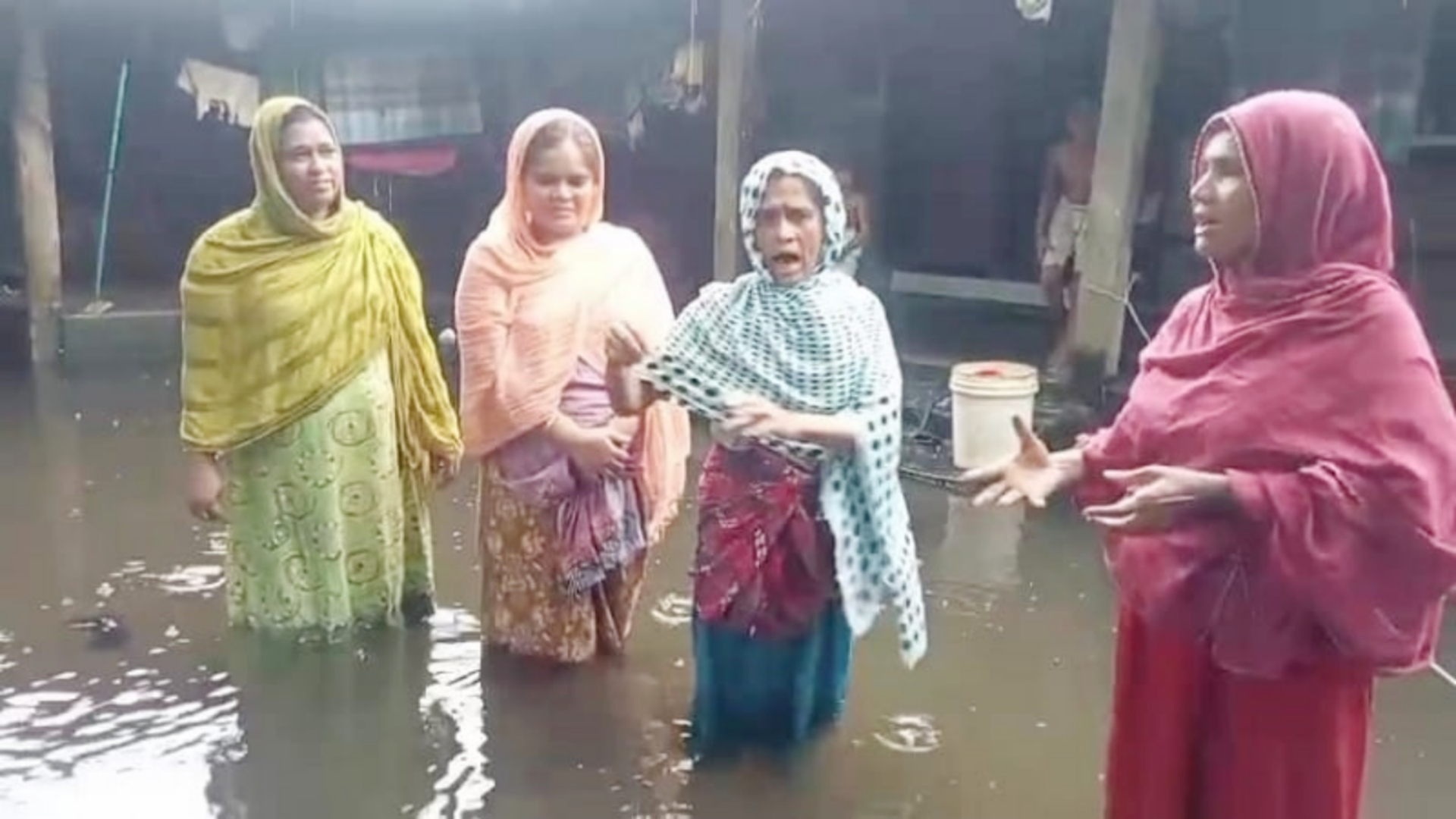 মাঝেরপাড়ার বাসিন্দা আনোয়ারা বেগম বলেন, সকাল থেকে পানির মধ্যে আটকা পড়ে আছেন তারা। রান্না করার সুযোগ না থাকায় পরিবারের কেউ খাবারও খেতে পারেনি।