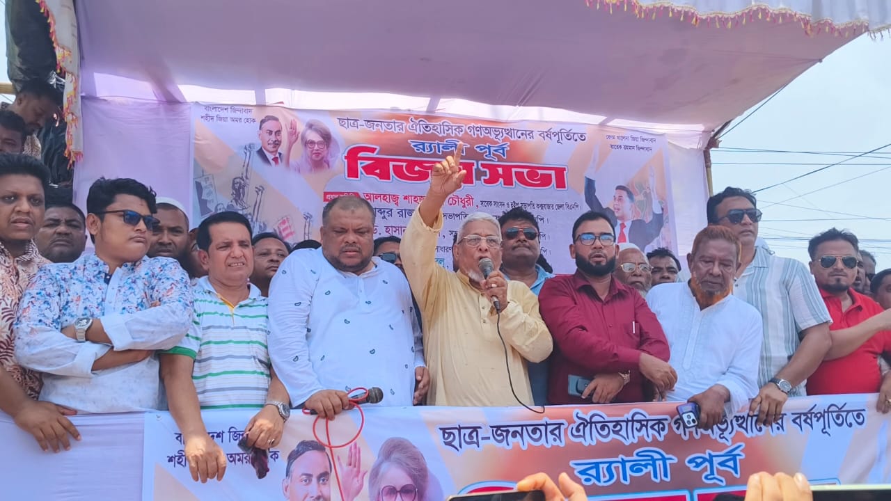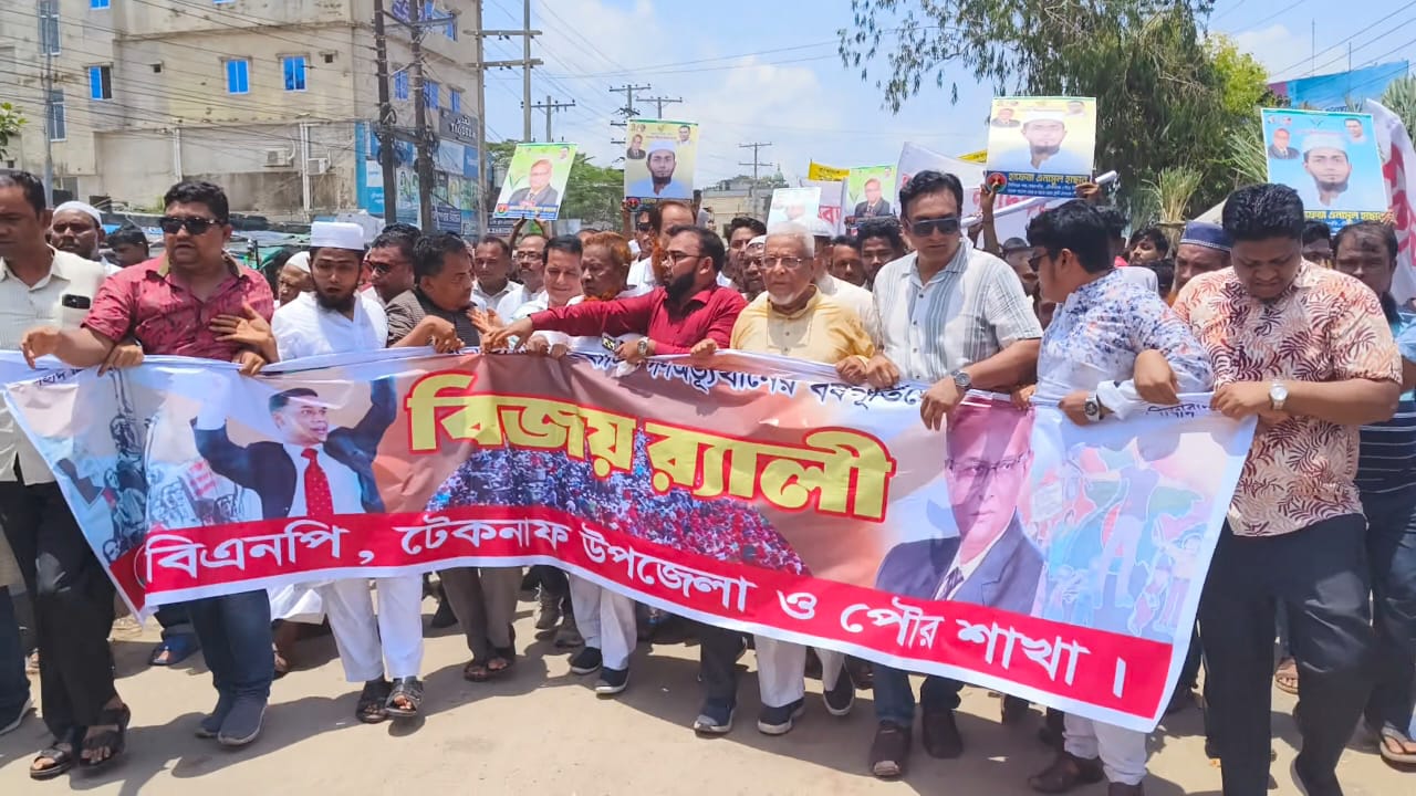 ছাত্র-জনতার ঐতিহাসিক গণঅভ্যুত্থানের বর্ষপূর্তিতে টেকনাফে পৃথকভাবে বিজয় র্যালী ও সমাবেশ করেছে বিএনপি দুই গ্রুপ। আজ মঙ্গলবার বেলা ১২ টার দিকে পৌরসভা বাস স্টেশন এলাকায় জেলা বিএনপির সভাপতি সাবেক সাংসদ শাহজাহান চৌধুরীর নেতৃত্বে মিছিল ও সমাবেশ করে টেকনাফ উপজেলা ও পৌরসভা বিএনপি। অন্যদিকে বিকেল চারটায় আলো শপিং সেন্টার থেকে জেলা বিএনপির কোষাধ্যক্ষ মো. আব্দুল্লাহর নেতৃত্বে বিশাল একটি মিছিল পৌরসভার বাস স্টেশন হয়ে উপজেলা পরিষদ ঘুরে বাস স্টেশনে এসে সমাবেশ করে।