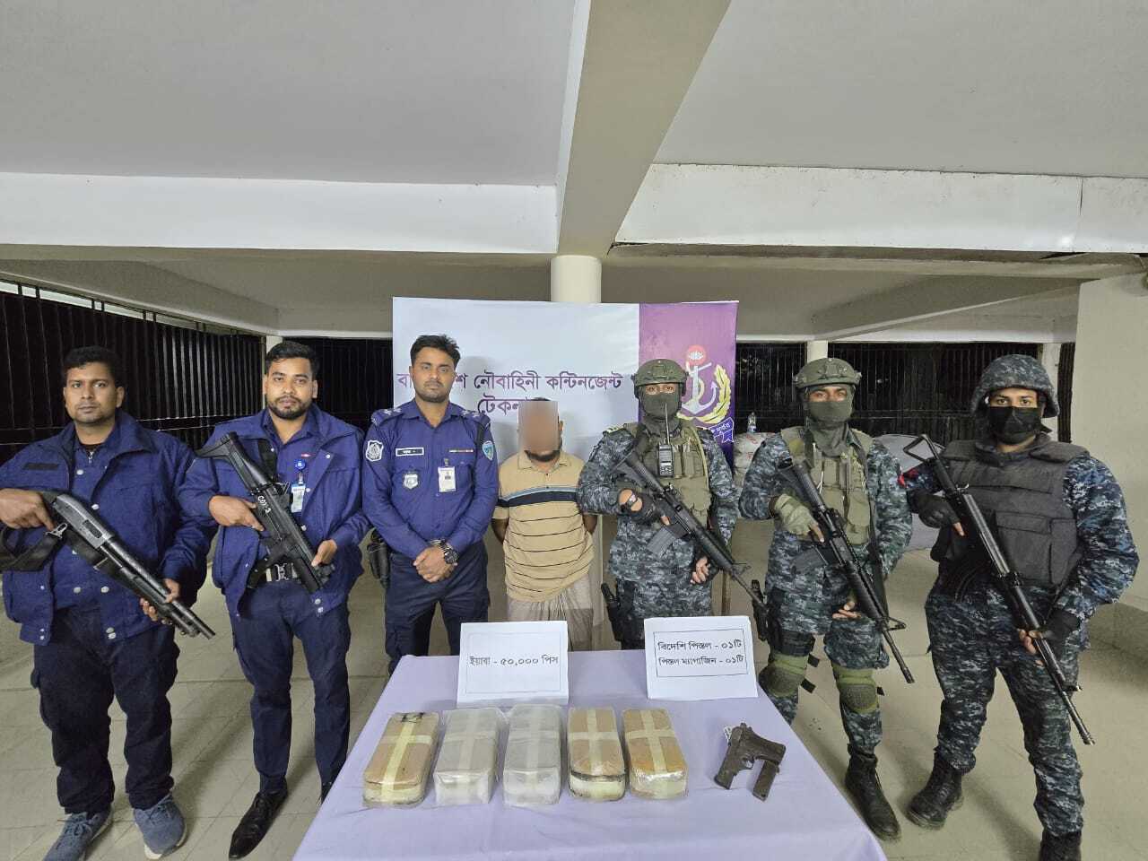 কক্সবাজারের টেকনাফে পুলিশ ও নৌবাহিনীর যৌথ অভিযানে একটি অবৈধ বিদেশি পিস্তল এবং ৫০ হাজার পিস ইয়াবা ট্যাবলেটসহ একজনকে গ্রেপ্তার করেছে পুলিশ।