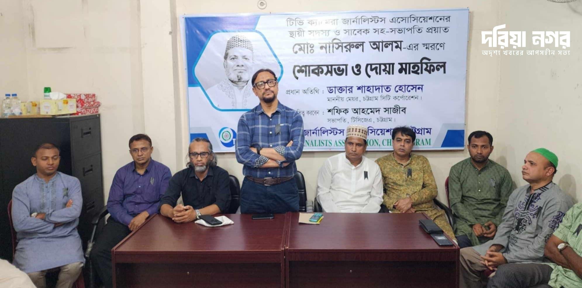 টিভি ক্যামেরা জার্নালিস্টস এসোসিয়েশন (টিসিজেএ), চট্টগ্রামের প্রয়াত সাবেক সহ-সভাপতি মোঃ নাসিরুল আলমের শোকসভা ও দোয়া মাহফিলে প্রধান অতিথির বক্তব্যে তিনি এসব কথা বলেন।