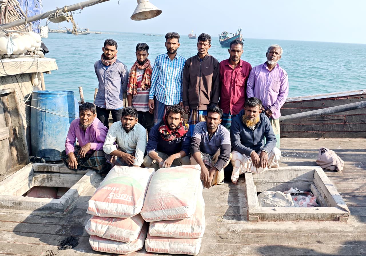 মায়ানমারে পাচারের সময় সিমেন্টবোঝাই বোটসহ আটক ১১