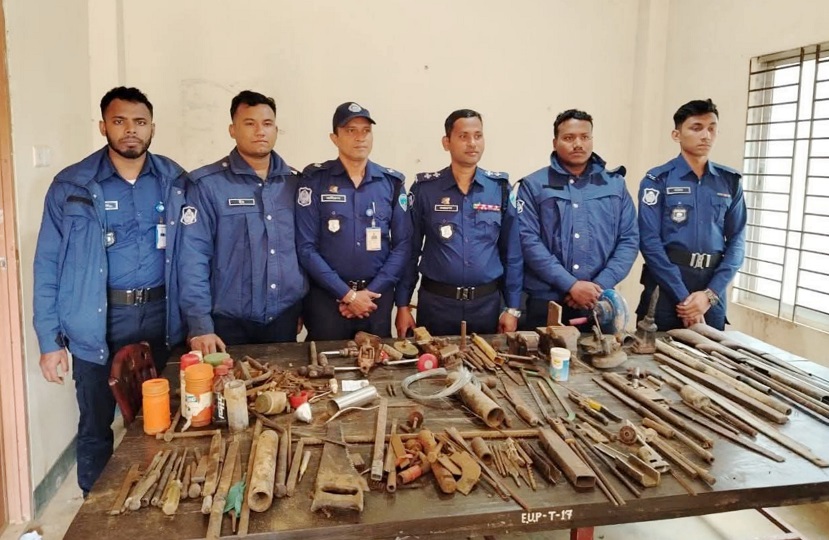 তিনি জানান, অভিযানে ঘটনাস্থল থেকে দুটি তাজা রাইফেলের গুলি, চারটি শর্টগানের খালি খোসা, দুটি বন্দুকের বাট, তিনটি ট্রিগার বক্স, ছয়টি বন্দুকের নল হিসেবে ব্যবহৃত পাইপসহ অস্ত্র তৈরির বিপুল সরঞ্জাম উদ্ধার করা হয়। এছাড়া হাওয়ার মেশিন, করাত, হাতুড়ি, প্লাস, শান দেওয়ার মেশিনসহ বিভিন্ন যন্ত্রপাতিও জব্দ করা হয়েছে।