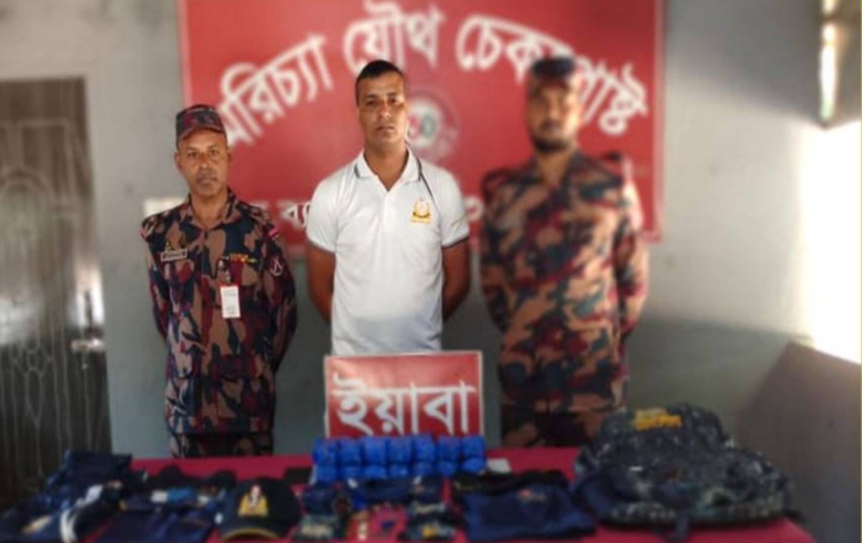 তিনি জানান, সোমবার (২৪ নভেম্বর) সকাল সাড়ে ১১টায় গোয়েন্দা তথ্যের ভিত্তিতে মরিচ্যা চেকপোস্টে টহল কার্যক্রম জোরদার করা হয়। এ সময় একটি সন্দেহজনক যাত্রীবাহী বাস থামানো হলে যাত্রী মো. সাফায়েত উল্লাহ (২৭) কে জিজ্ঞাসাবাদে সে নিজেকে নৌবাহিনীর সদস্য দাবি করে। তার বহন করা ব্যাগে ব্যক্তিগত পোশাক আছে বলে জানানোর পরও টহল দলের সদস্যরা ব্যাগটি তল্লাশি করলে পাওয়া যায়- নৌবাহিনীর লোগোযুক্ত ৪টি টি-শার্ট, ১ সেট ট্র্যাকস্যুট, ১টি ট্রাউজার, ১টি ক্যাপ, ৪টি মাস্ক, পার্স/মানিব্যাগ, ৩টি ইনসিগনিয়া ও ১টি আইডি কার্ড কভার। এসব সামগ্রীর গভীরে বিশেষভাবে লুকানো ছিল ৪০,০০০ পিস বার্মিজ ইয়াবা, যার বাজারমূল্য প্রায় ১ কোটি ২০ লাখ টাকা।