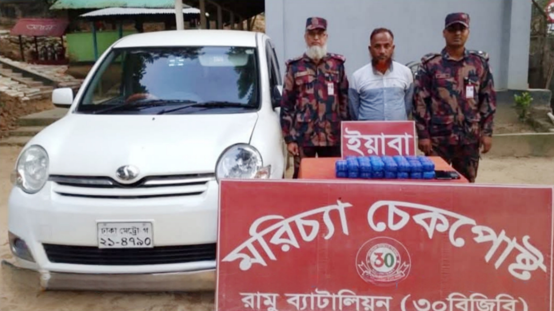 লেফটেন্যান্ট কর্নেল কাজী মাহতাব উদ্দিন আহমেদ জানান, অভিযান চালিয়ে একটি প্রাইভেট কার থেকে ৬০ হাজার পিস বার্মিজ ইয়াবা উদ্ধার করা হয়। এসময় গাড়ির চালক হেলাল উদ্দিনকে (৫৩) আটক করা হয়। হেলাল অবৈধ পণ্য বহনের কথা অস্বীকার করলেও গাড়ি তল্লাশি করে কৌশলে লুকানো ৬০ হাজার পিস বার্মিজ ইয়াবা উদ্ধার করা হয়।