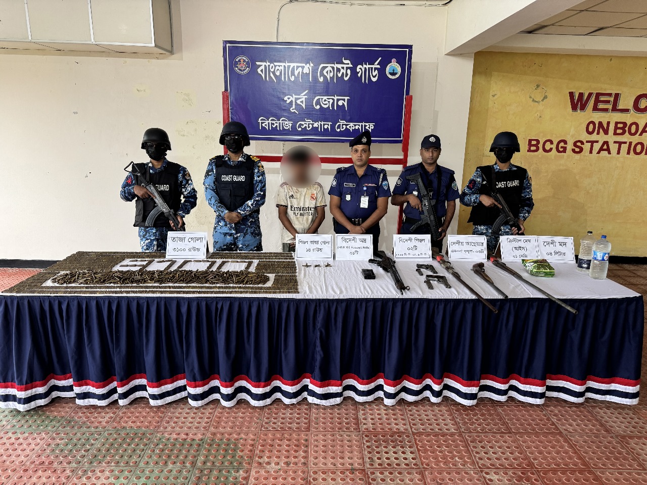 টেকনাফের জাদিমুরা পাহাড় থেকে বিপুল পরিমাণ আগ্নেয়াস্ত্র, গুলি ও ১ কেজি আইসসহ আপহৃত ১ ব্যাক্তি উদ্ধার