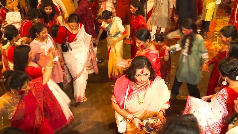 শুভ বিজয়ার দিনে সিঁদুর খেলায় মেতেছে পূজার্থীরা
