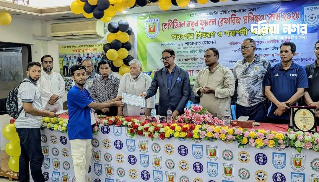 কুতুবদিয়া প্রতিনিধি: চট্টগ্রাম জেলা ক্রীড়া সংস্থা ও চট্টগ্রাম জেলা ফুটবল অ্যাসোসিয়েশনের সহযোগিতায় চট্টগ্রাম জেলা ফুটবল রেফারিজ এসোসিয়েশনেরর উদ্যোগে ও বাফুফে রেফারিজ কমিটির পরিচালনায় কেপিডিএল নতুন ফুটবল রেফারিজ প্রশিক্ষণ কোর্স ২০২৫ সম্পন্ন হয়েছে। গত বুধবার বিকালে চট্টগ্রাম জেলা স্টেডিয়ামে অংশ গ্রহণকারী সফল রেফারিদের মাঝে সনদপত্র বিতরণের মধ্য দিয়ে অনুষ্ঠানের সমাপ্তি টানা হয়। এই কোর্সে অংশগ্রহণ করে […]